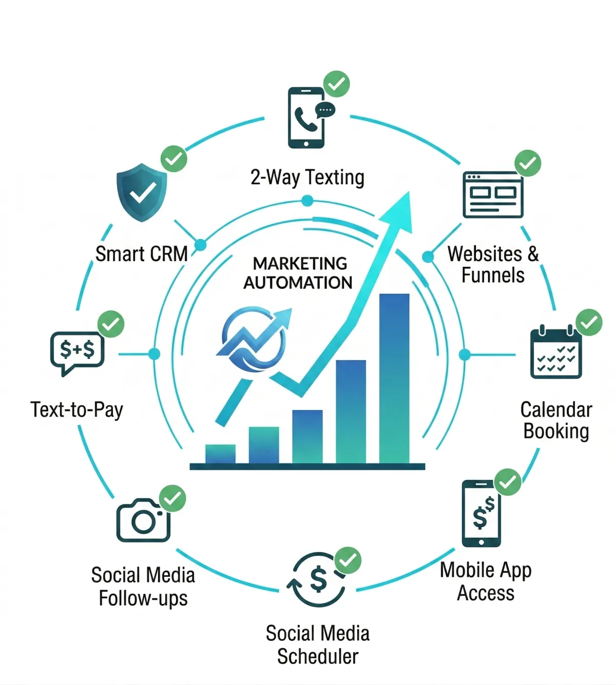 Stop paying for 10 different subscriptions. Our all-in-one platform handles your CRM, Email Marketing, SMS Automation, and Pipeline Management in one seamless flow. Built on industry-leading tech and optimized with 30 years of sales logic.